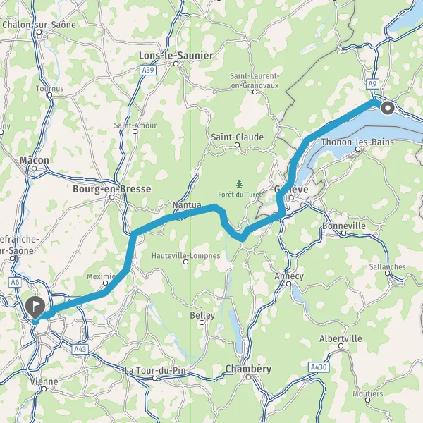 Avec le mode voiture, vous pouvez configurer vos options (type de véhicule, autoroute ou non, péage ou non, distance la plus courte), tout en ayant accès aux infos de circulation grâce à notre service d'info-trafic en temps réel. Ainsi faites des économies sur le coût ou la durée de votre voyage, en trouvant le trajet Lausanne Lyon adapté à vos besoins.