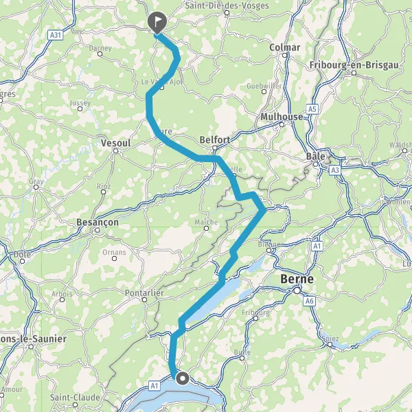 Entrer en France et prendre N57 E23 (Route de Vallorbe) sur 4,9 kilomètres