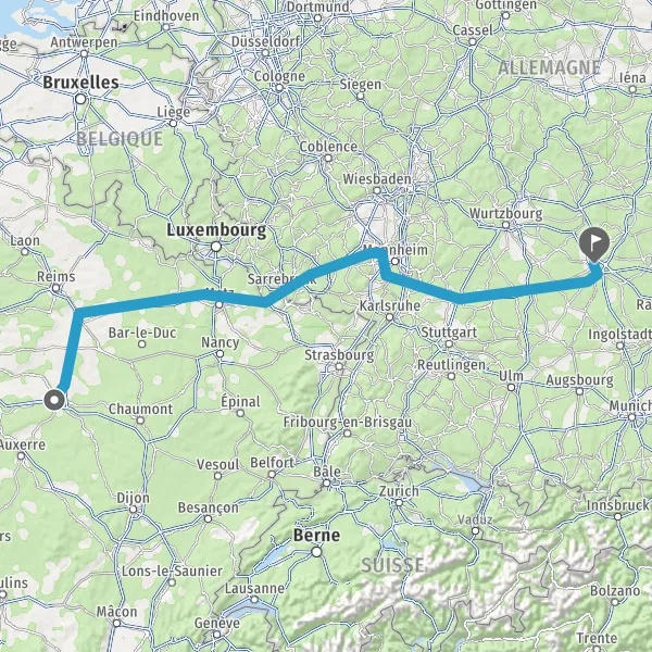 Prendre à droite et rejoindre A4 E50. Continuer sur 160 kilomètres
