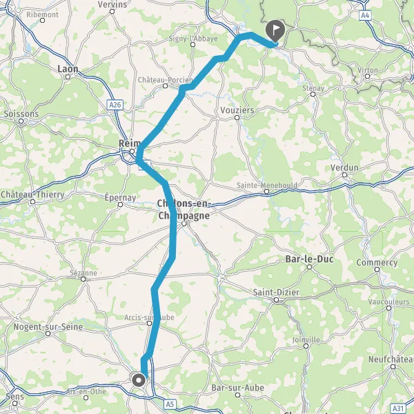 Arcis-sur-AubeFeugesA26Châlons-en-ChampagneVitry-le-François