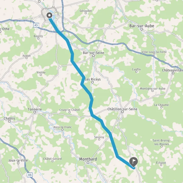 Au rond-point, prendre la 4ème sortie sur D671 (Route de Dijon) et continuer sur 7 kilomètres