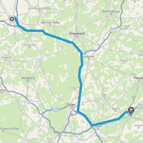 Prendre à gauche et rejoindre A39. Continuer sur 27 kilomètres
