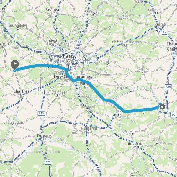Prendre à droite et rejoindre A5. Continuer sur 115 kilomètres