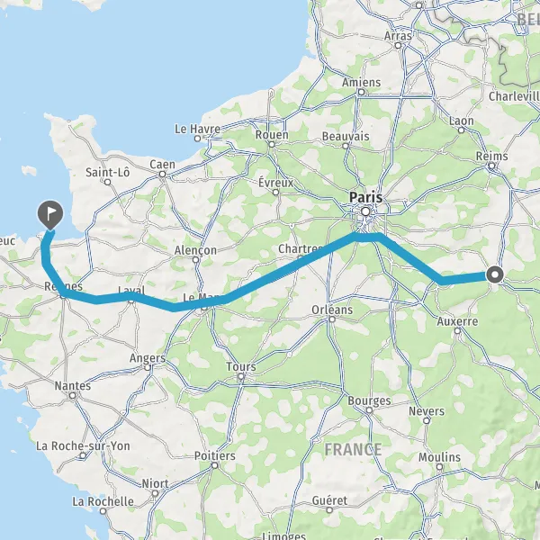 Prendre à droite et rejoindre A11 E50. Continuer sur 147 kilomètres