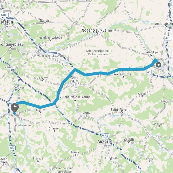 Prendre à droite et rejoindre A5. Continuer sur 50 kilomètres