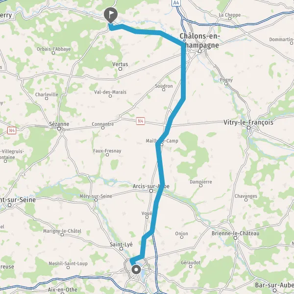 Arcis-sur-AubeFeugesA26Châlons-en-ChampagneVitry-le-François