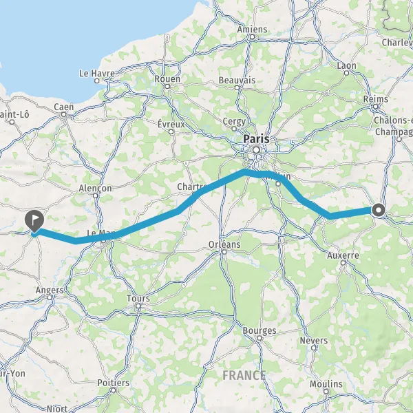 Prendre à droite et rejoindre A11 E50. Continuer sur 147 kilomètres