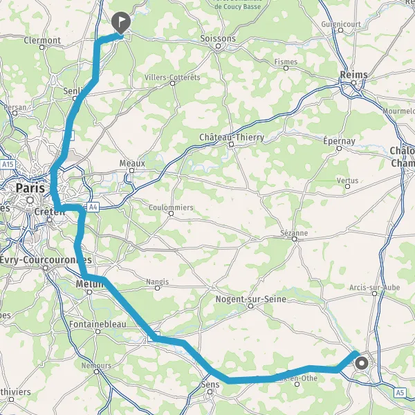 Prendre à droite et rejoindre A5. Continuer sur 115 kilomètres