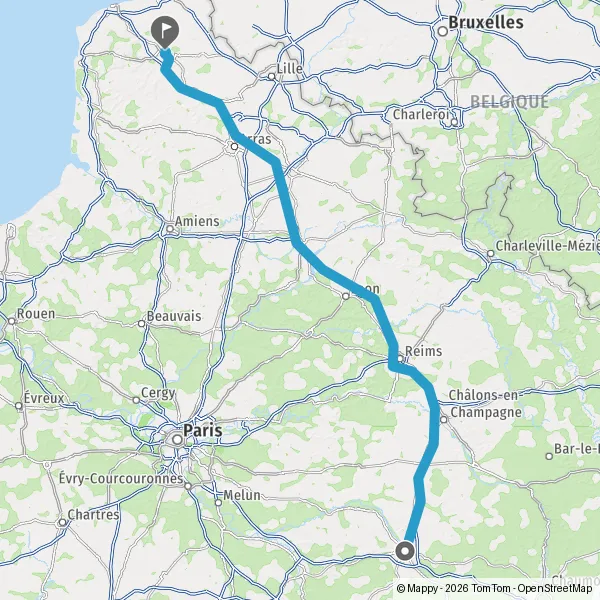 Prendre à droite et rejoindre A26. Continuer sur 222 kilomètres