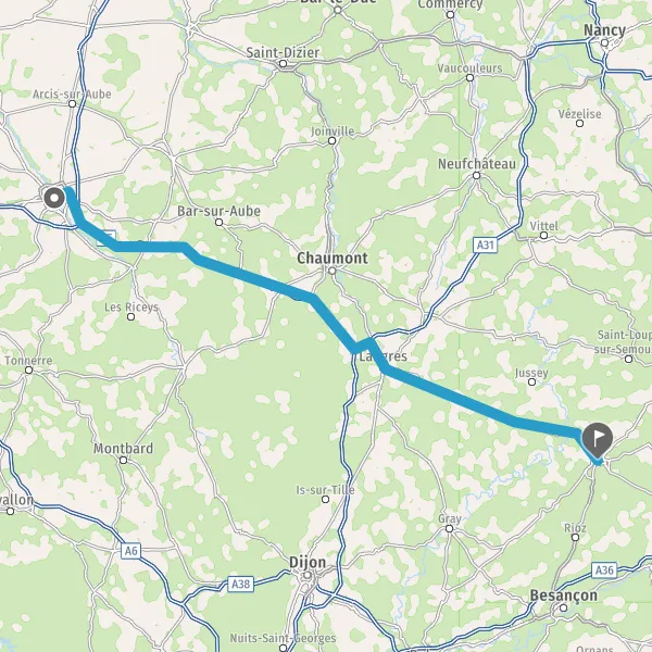 Au rond-point, prendre la 3ème sortie sur N19 (Route de Vesoul) et continuer sur 23 kilomètres