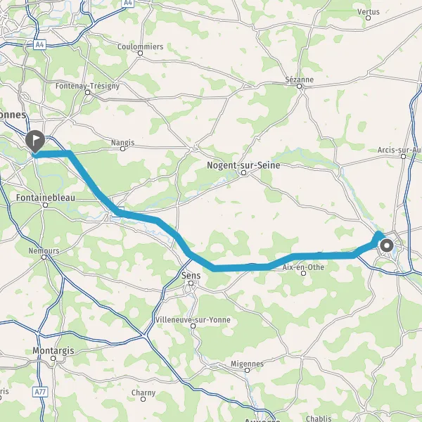 Prendre à droite et rejoindre A5. Continuer sur 100 kilomètres