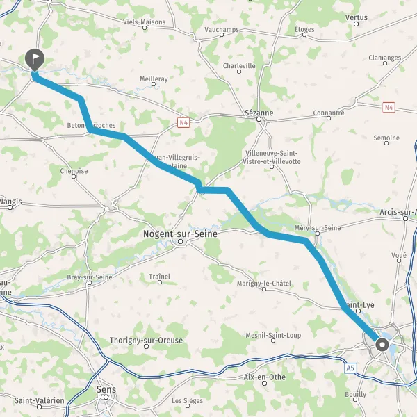 Tourner légèrement à gauche sur D48 (Route de Bethon) et continuer sur 5,5 kilomètres