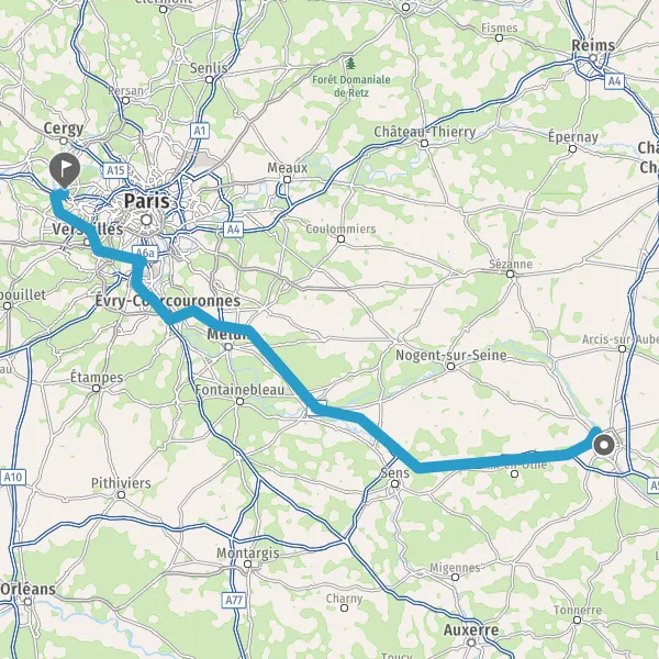 Prendre à droite et rejoindre A5. Continuer sur 115 kilomètres