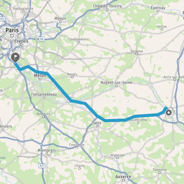Prendre à droite et rejoindre A5. Continuer sur 115 kilomètres