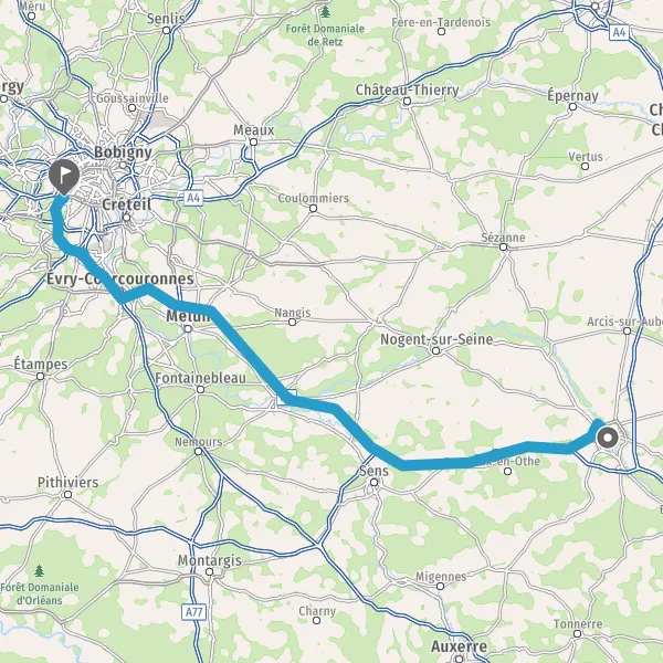 Prendre à droite et rejoindre A5. Continuer sur 115 kilomètres