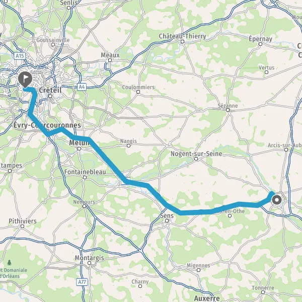Prendre à droite et rejoindre A5. Continuer sur 115 kilomètres