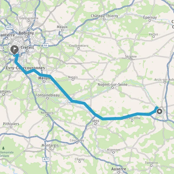 Prendre à droite et rejoindre A5. Continuer sur 115 kilomètres