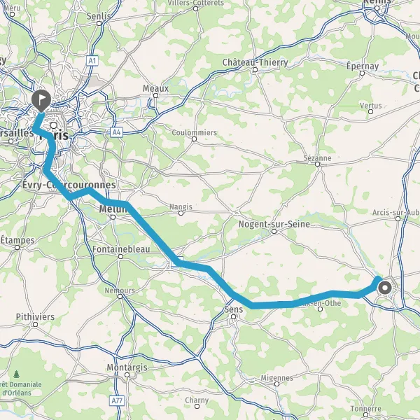 Prendre à droite et rejoindre A5. Continuer sur 115 kilomètres