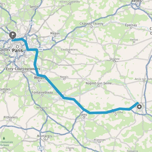 Prendre à droite et rejoindre A5. Continuer sur 115 kilomètres