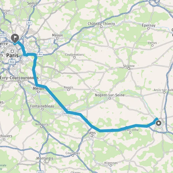 Prendre à droite et rejoindre A5. Continuer sur 115 kilomètres