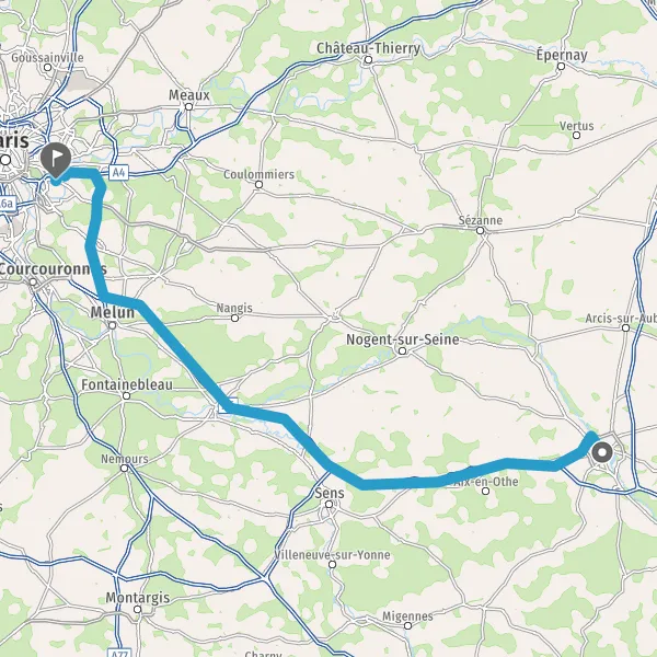 Prendre à droite et rejoindre A5. Continuer sur 115 kilomètres