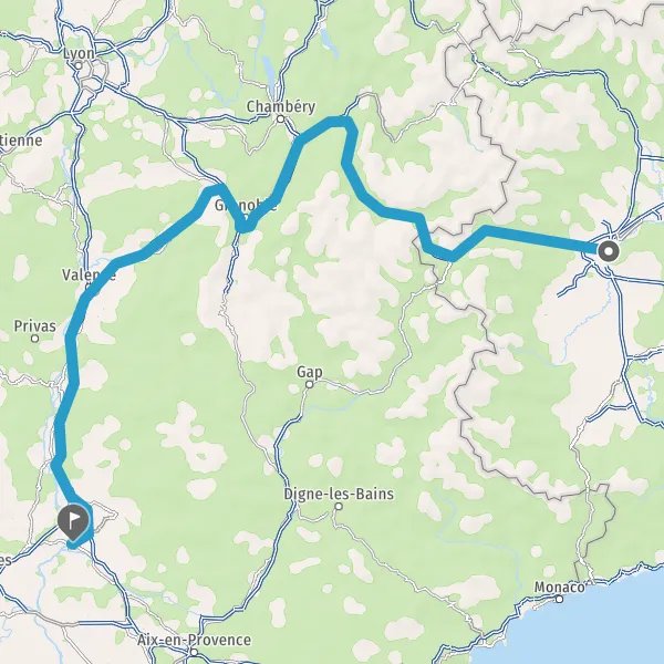 Prendre à droite et rejoindre A43 E70. Continuer sur 52 kilomètres