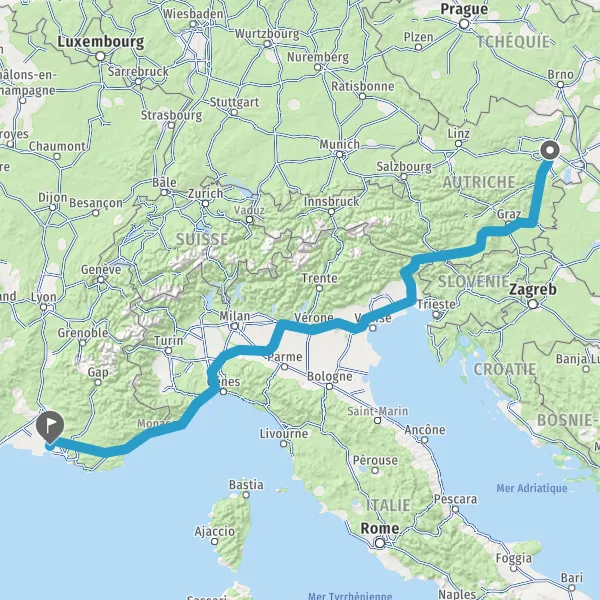 Payer 3,40 € (Péage La Turbie Pleine Voie) Payer 1,50 € (Péage Saint Isidore Pleine Voie) Payer 3,50 € (Péage Antibes Pleine Voie nord) Prendre un ticket (Péage Capitou) Payer 17,70 € (Péage La Barque) 1136 km