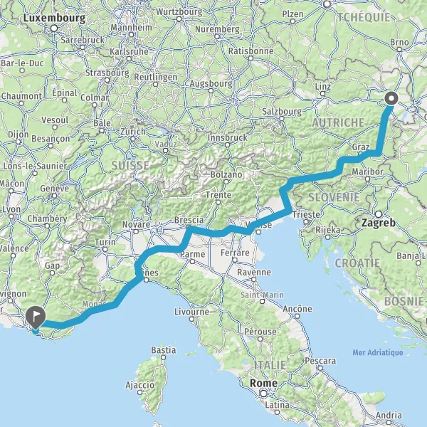 Payer 3,40 € (Péage La Turbie Pleine Voie) Payer 1,50 € (Péage Saint Isidore Pleine Voie) Payer 3,50 € (Péage Antibes Pleine Voie nord) Prendre un ticket (Péage Capitou) 1136 km
