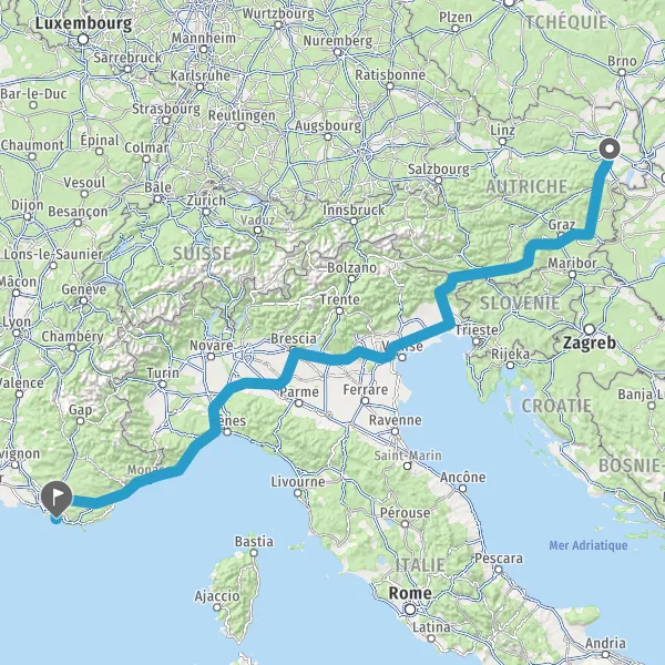 Payer 3,40 € (Péage La Turbie Pleine Voie) Payer 1,50 € (Péage Saint Isidore Pleine Voie) Payer 3,50 € (Péage Antibes Pleine Voie nord) Prendre un ticket (Péage Capitou) 1136 km