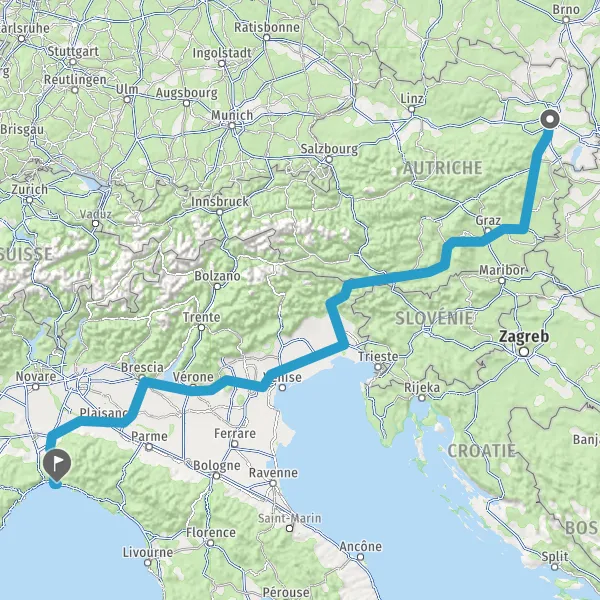 Continuer E70 (Passante di Mestre) sur 154 kilomètres
