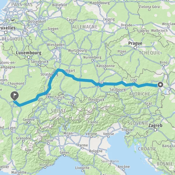 Prendre à droite et rejoindre A36 E54. Continuer sur 650 mètres