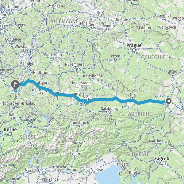 Entrer en Allemagne et prendre B12 E552 (B12) sur 101 kilomètres