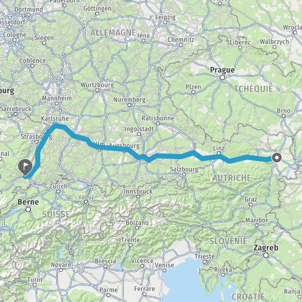 Prendre à droite et rejoindre A36 E54. Continuer sur 650 mètres