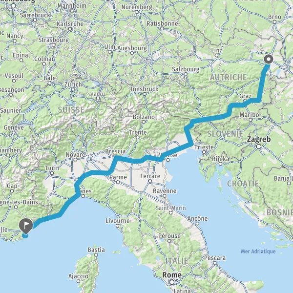 Payer 3,40 € (Péage La Turbie Pleine Voie) Payer 1,50 € (Péage Saint Isidore Pleine Voie) Payer 3,50 € (Péage Antibes Pleine Voie nord) Prendre un ticket (Péage Capitou) 1136 km