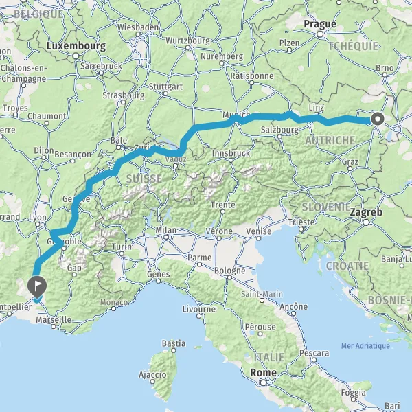 Payer 3,40 € (Péage La Turbie Pleine Voie) Payer 1,50 € (Péage Saint Isidore Pleine Voie) Payer 3,50 € (Péage Antibes Pleine Voie nord) Prendre un ticket (Péage Capitou) Payer 17,70 € (Péage La Barque) 1136 km