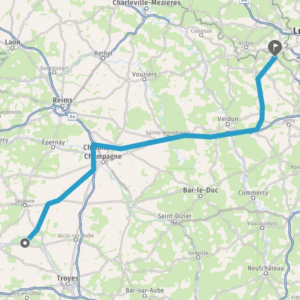 Prendre à droite et rejoindre A4 E50. Continuer sur 101 kilomètres