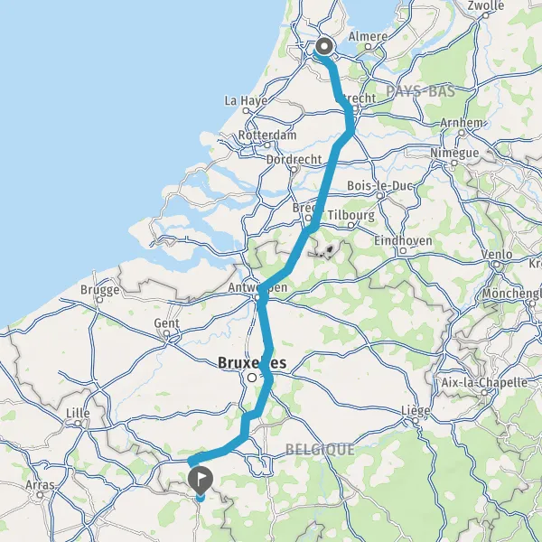 Entrer en France et prendre N2 (Route de Mons) sur 6,7 kilomètres