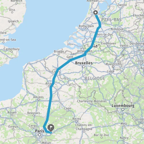 Continuer E17 (Autoroute du Nord) sur 168 kilomètres