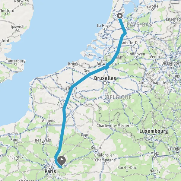 Continuer E17 (Autoroute du Nord) sur 168 kilomètres