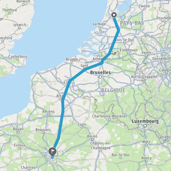 Continuer E17 (Autoroute du Nord) sur 173 kilomètres