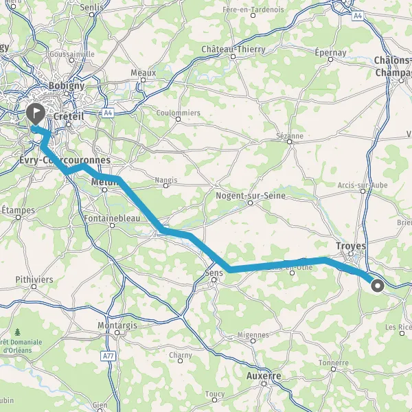 Prendre à droite et rejoindre A5. Continuer sur 130 kilomètres