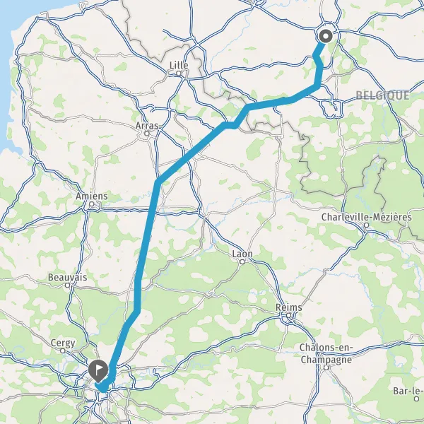 Continuer A1 A1 E19 E15 sur 120 kilomètres