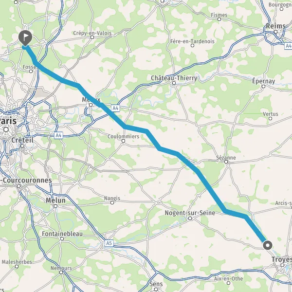 Prendre à droite et rejoindre A5. Continuer sur 115 kilomètres