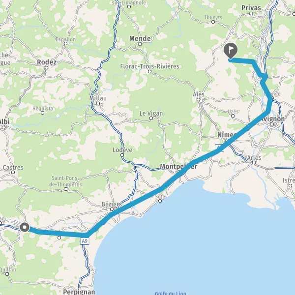 Continuer et rejoindre A9 E15 E80. Continuer sur 191 kilomètres