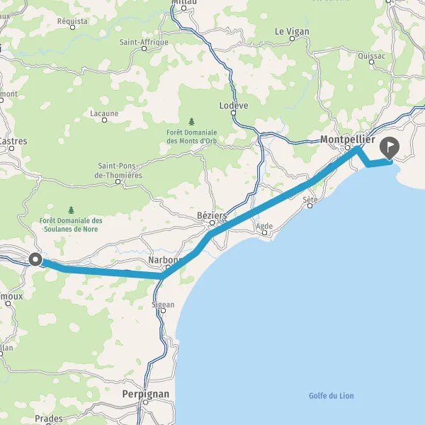 Continuer et rejoindre A9 E15 E80. Continuer sur 84 kilomètres