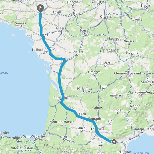 Prendre à droite et rejoindre A83. Continuer sur 150 kilomètres
