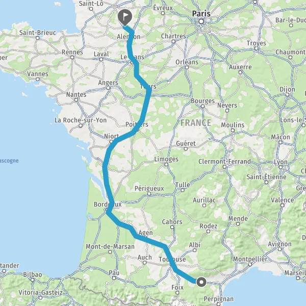Continuer E5 (L'Aquitaine) sur 328 kilomètres