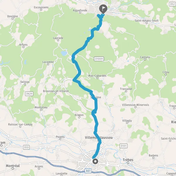 Au rond-point, prendre la 2ème sortie sur D118 (Avenue de la Montagne Noire) et continuer sur 3,8 kilomètres