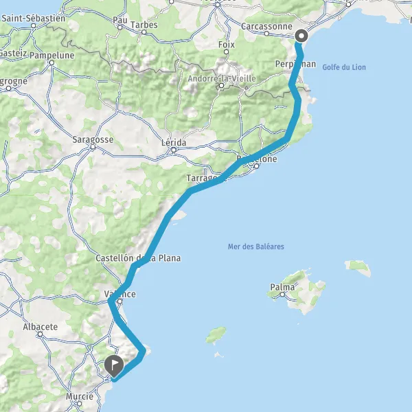 Prendre à droite et rejoindre A9 E15 E80. Continuer sur 91 kilomètres