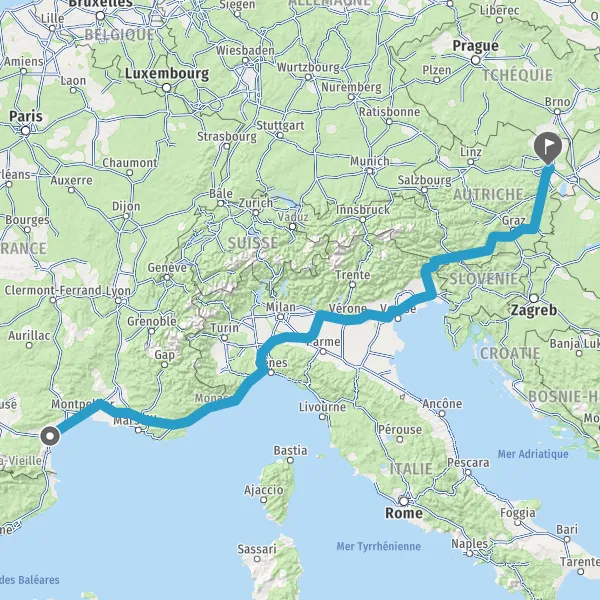 Payer 1,50 € (Péage Saint Isidore Pleine Voie) Payer 3,40 € (Péage La Turbie Pleine Voie) 404 km